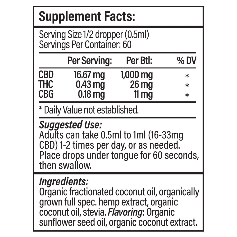 Full Spectrum CBD Oil - Coconut Flavor - 1000 mg - 1 oz